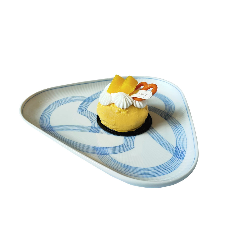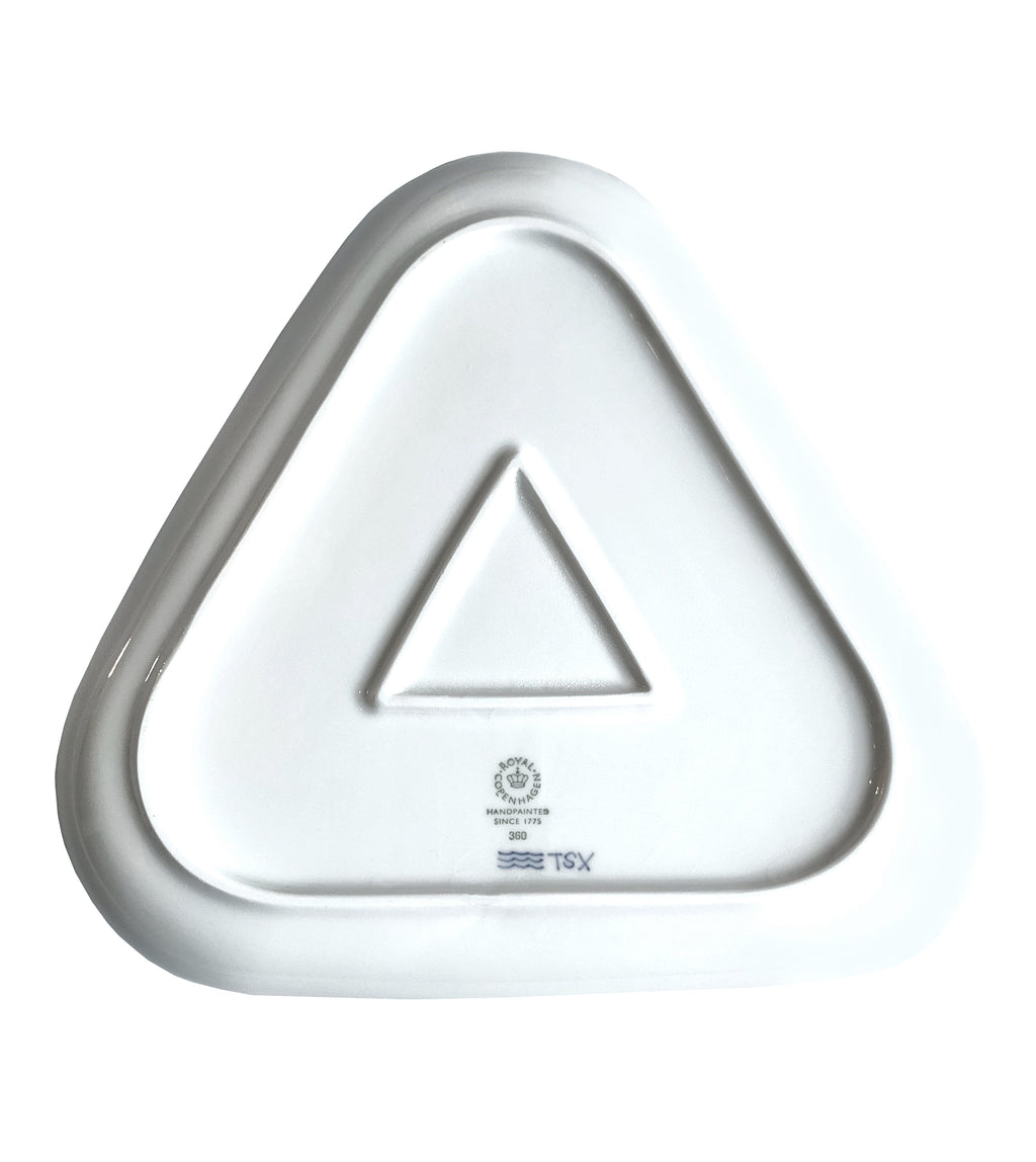 Un nuovo decoro su questo piatto triangolare, un dipinto di grande precisione realizzato interamente a mano libera da artisti di grande abilità. Una grafica contemporanea, moderna