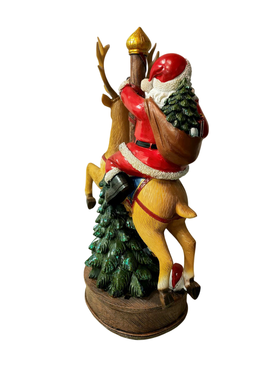 Babbo Natale con la sua renna in viaggio per  distribuire i regali,